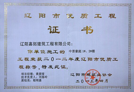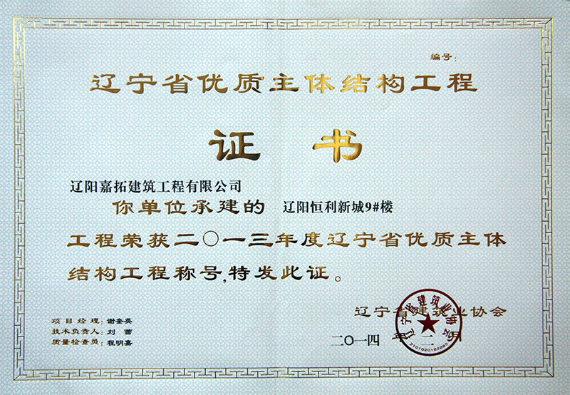 2013年度遼寧省建筑業(yè)企業(yè)優(yōu)秀項目經(jīng)理